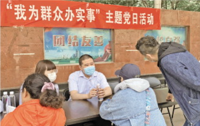 圖為裴昱(中)在“我為群眾辦實(shí)事”主題黨日活動(dòng)上為群眾答疑解惑。 受訪者供圖