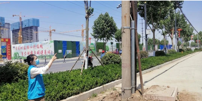 5月17日,居民反映的電線桿傾斜問題已解決,劉沙進行核查。 李大利 攝