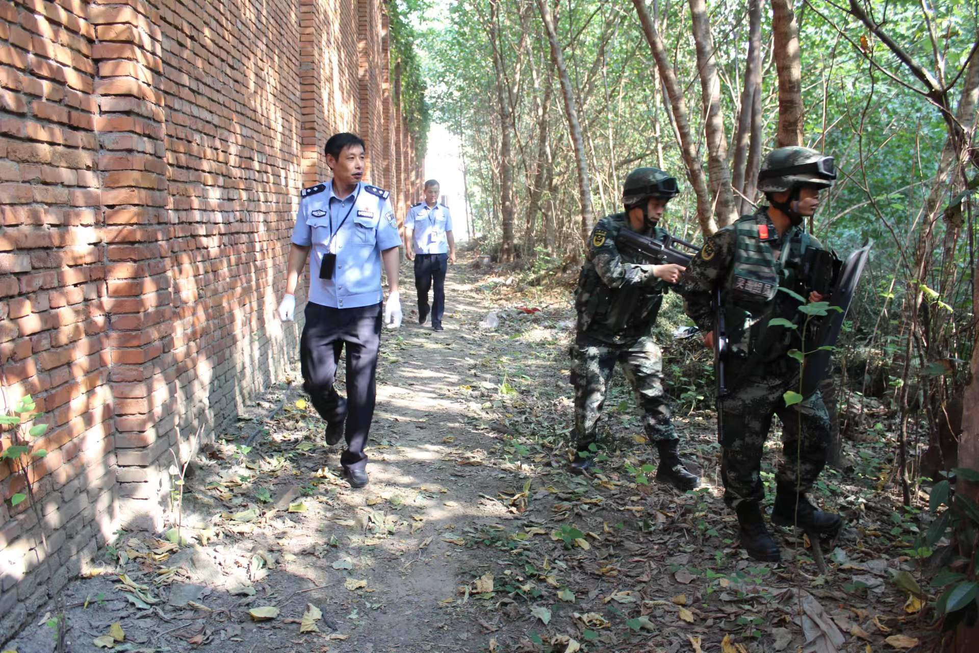圖為董志勇(左一)與武警聯(lián)合開展看守所安全隱患排查。