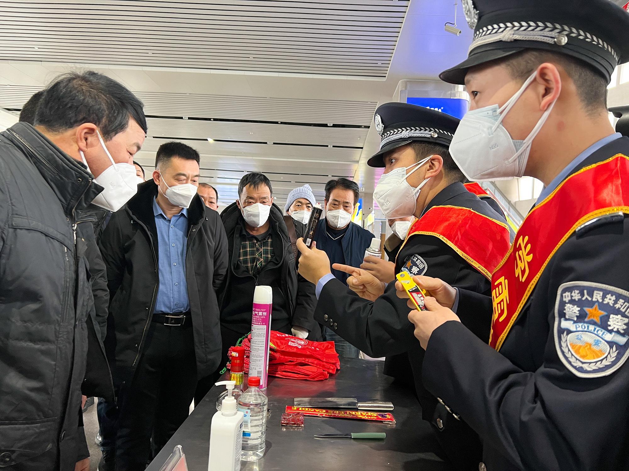 近日,烏魯木齊鐵路公安局奎屯公安處組織各站派出所開(kāi)展青年志愿者活動(dòng),民警深入候車(chē)廳、售票室、車(chē)廂內(nèi),通過(guò)發(fā)放宣傳資料、實(shí)物展示講解等方式,宣講鐵路安全知識(shí)、“防電詐”安全常識(shí)等,提升旅客群眾安全防范意識(shí),營(yíng)造安全、有序、溫馨的春運(yùn)乘車(chē)環(huán)境,展示良好鐵警形象。圖為克拉瑪依站派出所民警向候車(chē)旅客講解禁止攜帶的危險(xiǎn)物品種類(lèi)。
