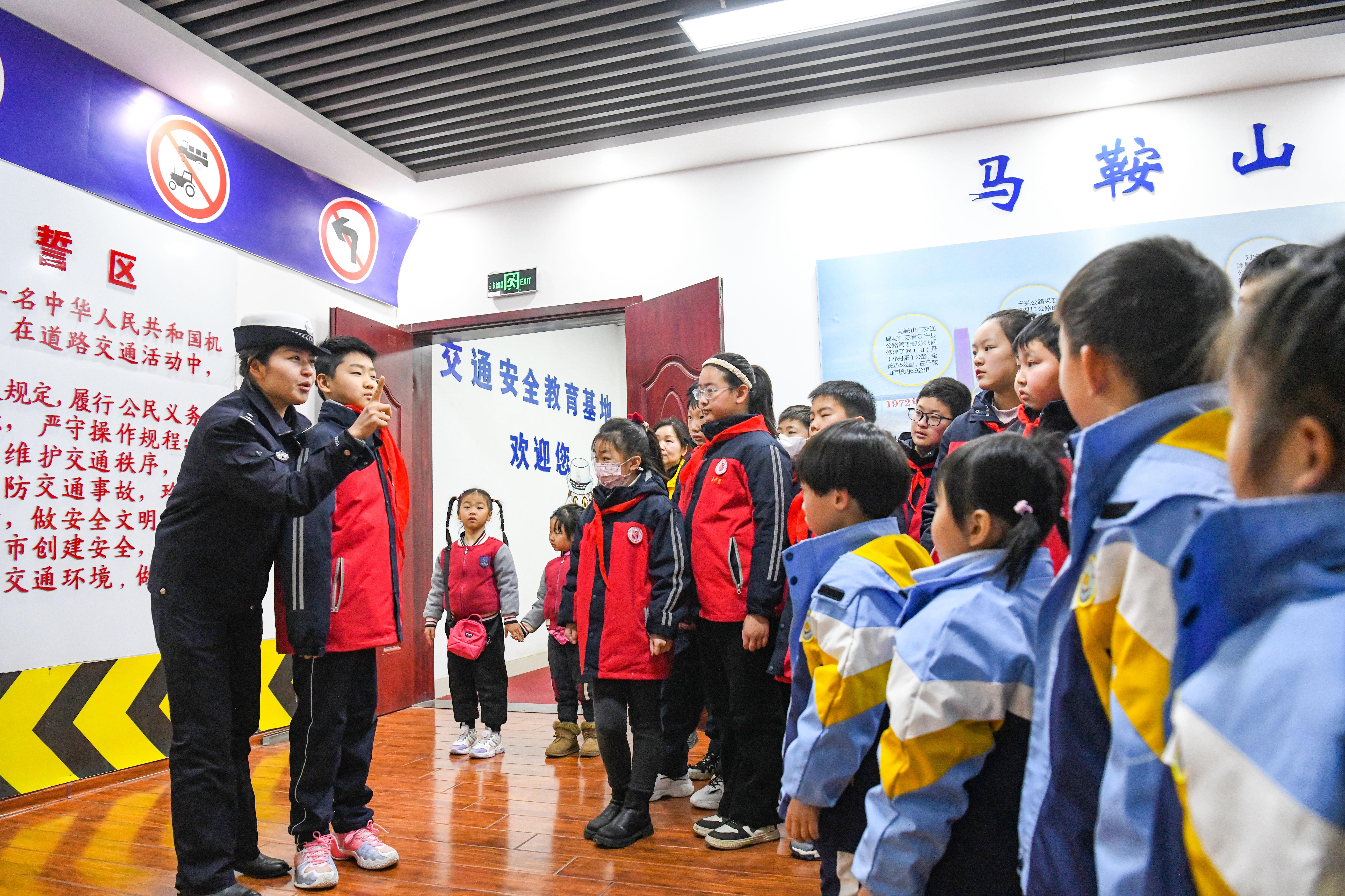 2月15日,安徽省含山縣公安局交管大隊(duì)邀請(qǐng)?jiān)摽h中小學(xué)生來到馬鞍山市交通安全教育基地,為學(xué)生們帶來一堂“沉浸式”交通安全課?,F(xiàn)場(chǎng),民警利用“模擬交通”智慧課堂,與同學(xué)們積極互動(dòng),通過模擬駕駛機(jī)動(dòng)車、摩托車,對(duì)走錯(cuò)道、未按交警手勢(shì)通行、搶燈等違法行為及時(shí)糾正,引導(dǎo)孩子們自覺遵守交通法規(guī),牢固樹立安全意識(shí)。圖為民警為學(xué)生講解交通安全知識(shí)。 本報(bào)通訊員 馮善軍 攝