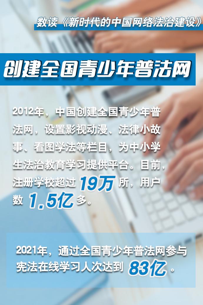互聯(lián)網(wǎng)是人類文明發(fā)展的重要成果,法治是互聯(lián)網(wǎng)治理的基本方式。長(zhǎng)期以來(lái),我國(guó)堅(jiān)持依法治網(wǎng),持續(xù)推進(jìn)網(wǎng)絡(luò)空間法治化,推動(dòng)互聯(lián)網(wǎng)在法治軌道上健康運(yùn)行。3月16日,國(guó)務(wù)院新聞辦公室發(fā)布《新時(shí)代的中國(guó)網(wǎng)絡(luò)法治建設(shè)》白皮書,白皮書公布了很多重要數(shù)據(jù),讓我們通過(guò)這些數(shù)據(jù),感受新時(shí)代以來(lái)我國(guó)在網(wǎng)絡(luò)立法、執(zhí)法、司法、普法、法治教育等領(lǐng)域取得的歷史性成就。