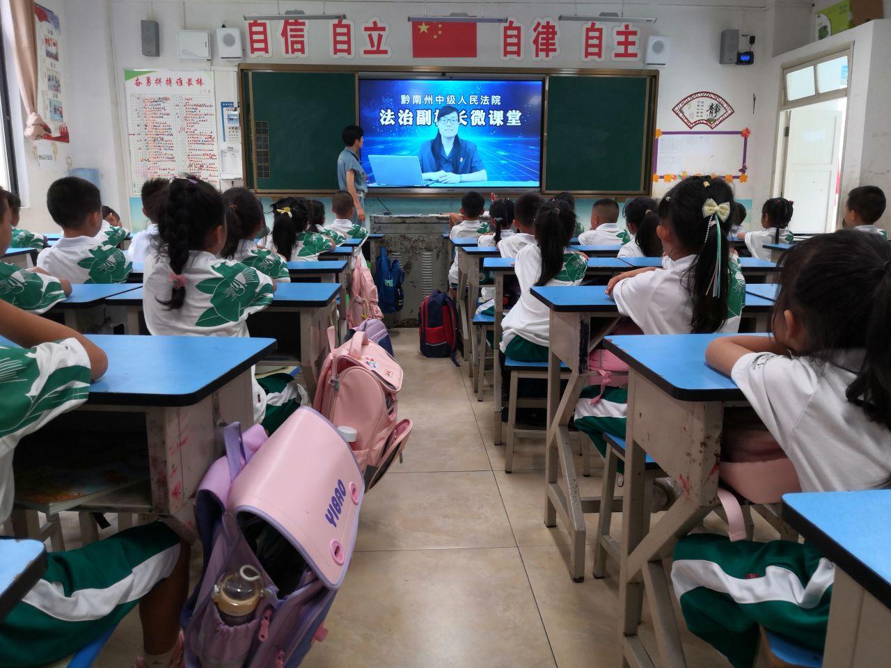 不僅如此,為了進一步增強學生的法律意識,深化開展法治宣傳教育,引導學生樹立社會主義法治觀念,助推平安校園建設,都勻四小還邀請法治副校長金長虹錄制法治教育微講堂,利用班隊會時間為廣大師生播放,讓同學們做到尊法學法守法用法。