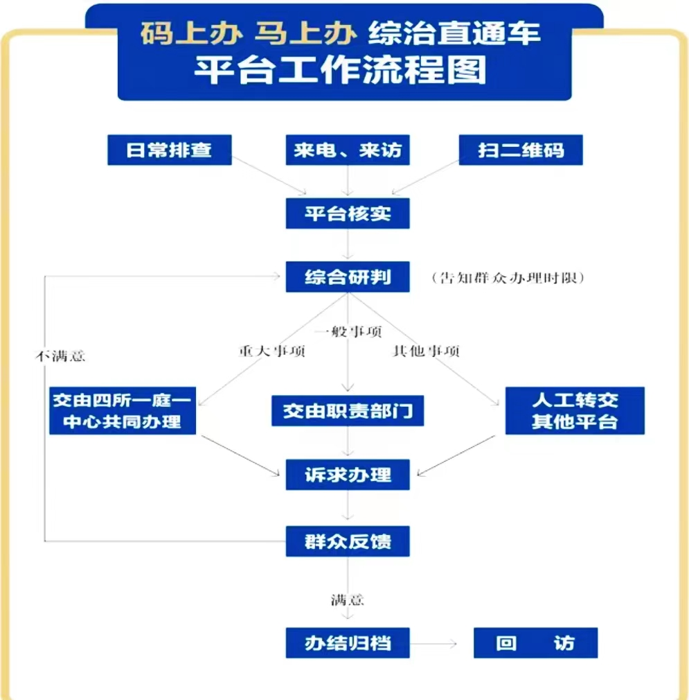 “碼上辦·馬上辦”綜治直通車平臺(tái)工作流程圖
