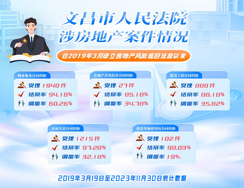 2023年11月,中央政法委在全國范圍內(nèi)評選出104個“楓橋式工作法”單位,文昌法院訴調(diào)聯(lián)動化解房地產(chǎn)風(fēng)險工作法位列其中。