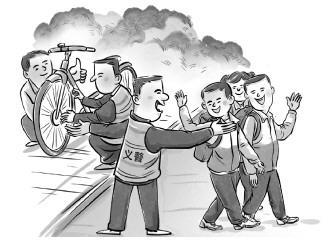 “這張照片是小孩考差了在那里哭,我們的義警看見以后,就默默地陪著她走回家;這張是義警舉報(bào)這個(gè)藥店出售右美沙芬,我們聯(lián)合藥監(jiān)過去查處;這張是學(xué)生自行車鏈條壞了,本就擅長(zhǎng)修車的義警跑過去,三下五除二就幫他修好了……”鄒吳勇指著這些照片如數(shù)家珍,笑稱義警隊(duì)伍里藏龍臥虎。