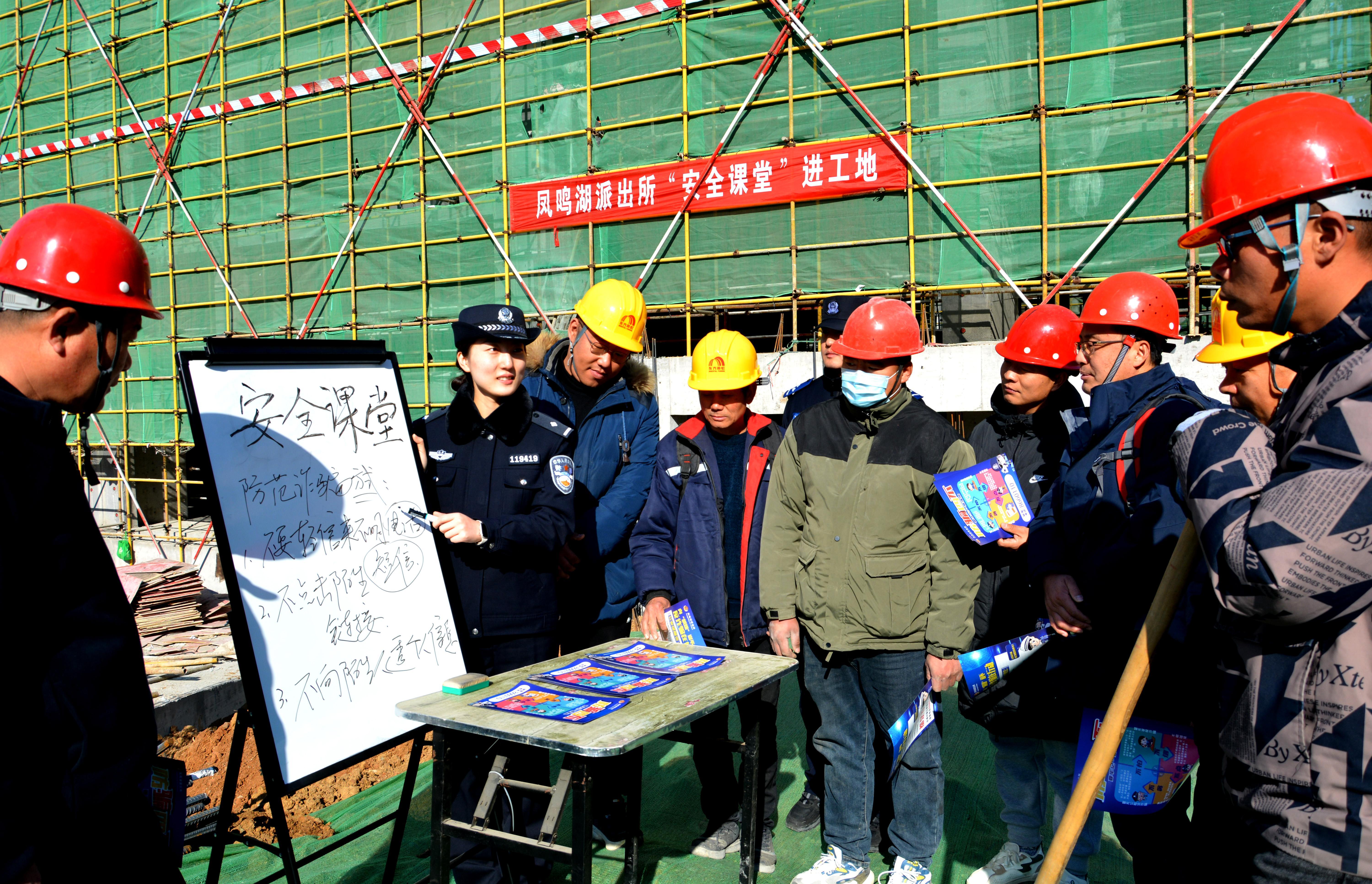 為提高轄區(qū)務工群體的法律意識和安全防范意識,連日來,山東省棗莊市公安局薛城分局鳳鳴湖派出所組織民輔警走進轄區(qū)建筑工地,通過開設工地安全課堂,向工人宣傳反詐防盜知識。圖為近日,民警向務工人員宣傳反詐防盜安全知識。