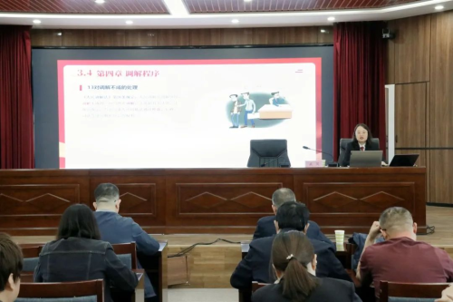 4月24日,內(nèi)蒙古自治區(qū)烏海市烏達(dá)區(qū)人民法院組織開展了2025年度特邀人民調(diào)解員培訓(xùn)班。立案庭庭長武笑為20余名人大代表、政協(xié)委員特邀調(diào)解員帶來了一場干貨滿滿的法律知識課程。