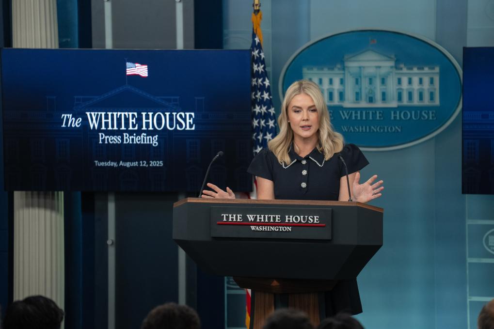 8月12日,在美國(guó)首都華盛頓白宮,白宮新聞秘書(shū)萊維特出席記者會(huì)。新華社記者胡友松攝