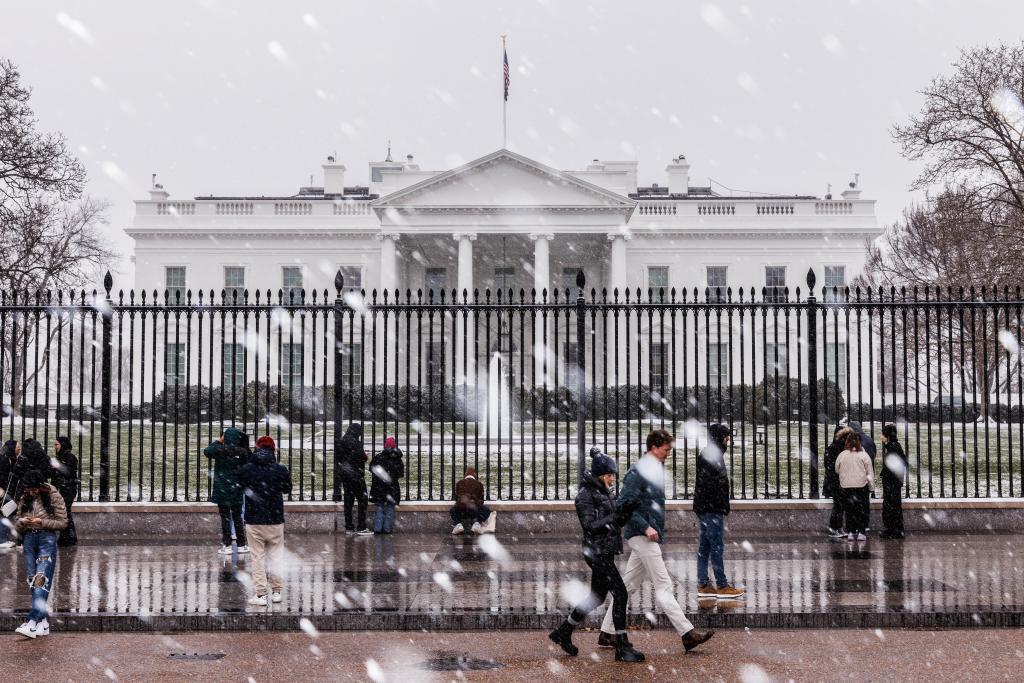 這是2024年1月15日在美國(guó)首都華盛頓拍攝的雪中的白宮。新華社發(fā)(阿倫攝)