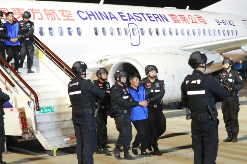 2024年1月30日,在緬甸內比都國際機場,緬甸警方依法向我公安機關移交緬北重大犯罪嫌疑人劉正祥。張建鑫 攝