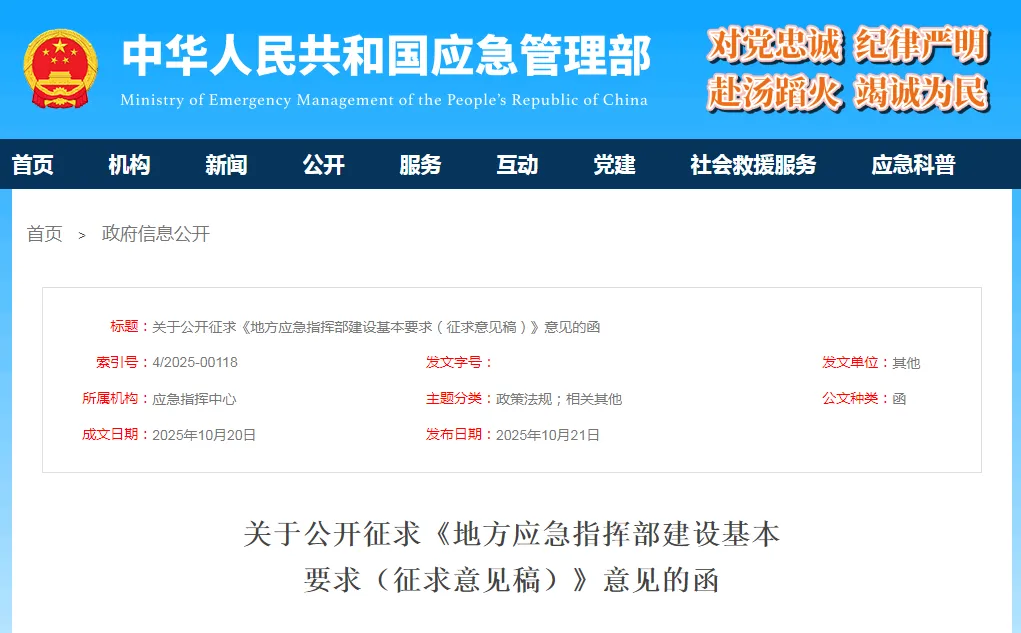 關于公開征求《地方應急指揮部建設基本要求(征求意見稿)》意見的函