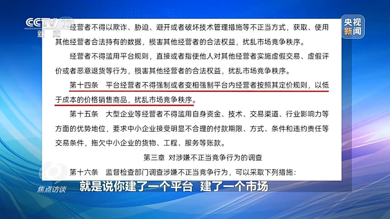 那么,新版的反不正當競爭法實施后,這樣的平臺“價格戰(zhàn)”違法嗎?答案是肯定的。最新出臺的法規(guī)直指電商平臺價格戰(zhàn)這樣的行業(yè)頑疾,精準瞄準當下由平臺主導的“內(nèi)卷式”不正當競爭。第十四條條款中寫明:平臺經(jīng)營者不得強制或變相強制商家以低于成本的價格銷售商品。這意味著,那些“不降價就不給流量”的潛規(guī)則,即將成為歷史。