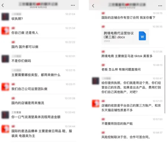 隨后,對(duì)方發(fā)來一份合同,在其中約定,營(yíng)業(yè)執(zhí)照被用來為該商戶的客戶注冊(cè)電商店鋪使用。出租方同時(shí)還需要提供身份證等信息,并配合該商戶進(jìn)行注冊(cè)等操作。