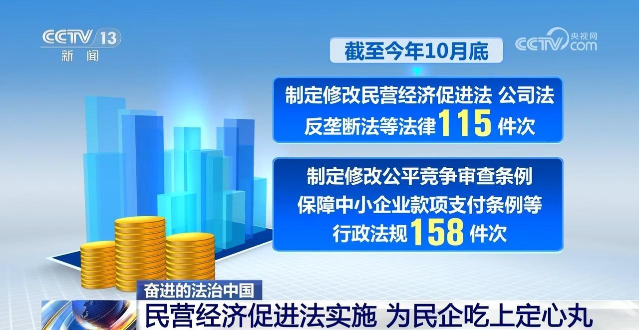 為推進(jìn)法治化營(yíng)商環(huán)境建設(shè),五年來,我國(guó)深入推進(jìn)科學(xué)立法、民主立法、依法立法,切實(shí)以高質(zhì)量立法保障經(jīng)濟(jì)社會(huì)高質(zhì)量發(fā)展,截至今年10月底,制定修改民營(yíng)經(jīng)濟(jì)促進(jìn)法、公司法、反壟斷法等法律115件次,制定修改公平競(jìng)爭(zhēng)審查條例、保障中小企業(yè)款項(xiàng)支付條例等行政法規(guī)158件次。同時(shí),堅(jiān)持立改廢釋并舉,對(duì)全部現(xiàn)行600多部行政法規(guī)開展集中清理,統(tǒng)籌開展涉企不平等政策和法律法規(guī)清理,為建設(shè)統(tǒng)一大市場(chǎng)、推動(dòng)高質(zhì)量發(fā)展提供了重要保障和支撐。