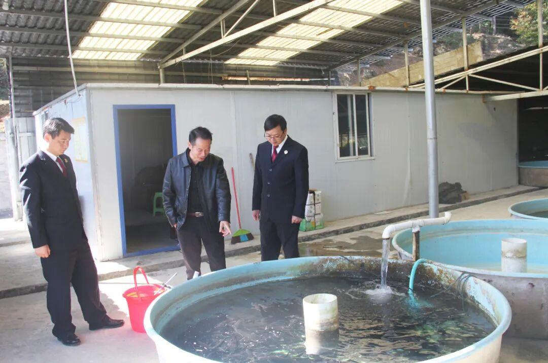 江口縣檢察院檢察官實地調(diào)查養(yǎng)殖企業(yè)的養(yǎng)殖設(shè)施。