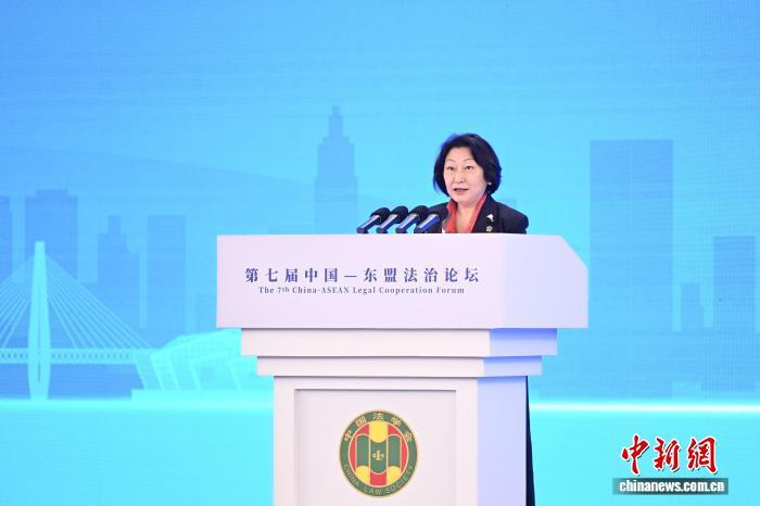 圖為國際調解院秘書長鄭若驊在第七屆中國—東盟法治論壇上發(fā)言。中新社記者 何蓬磊 攝