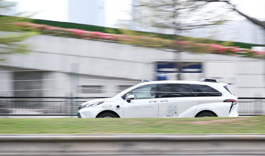 2025年3月11日,配備有安全員的自動(dòng)駕駛示范運(yùn)營(yíng)專線出租車行駛在廣州塔附近道路上。新華社記者 鄧華 攝