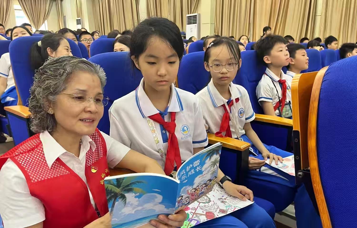“媽媽訓(xùn)教團(tuán)”志愿者服務(wù)隊(duì)隊(duì)員謝盛東、李春燕、鄭愛(ài)琳、路婭莉、陳愛(ài)珍、彭紅威、楊桂云、符文寶、謝振榮、晏桂芬,??谑泄簿置捞m分局紅島海岸派出所民警,以及學(xué)校400名師生共同參與活動(dòng)。