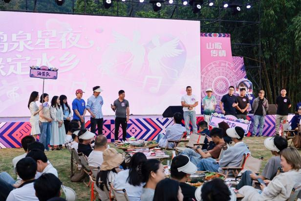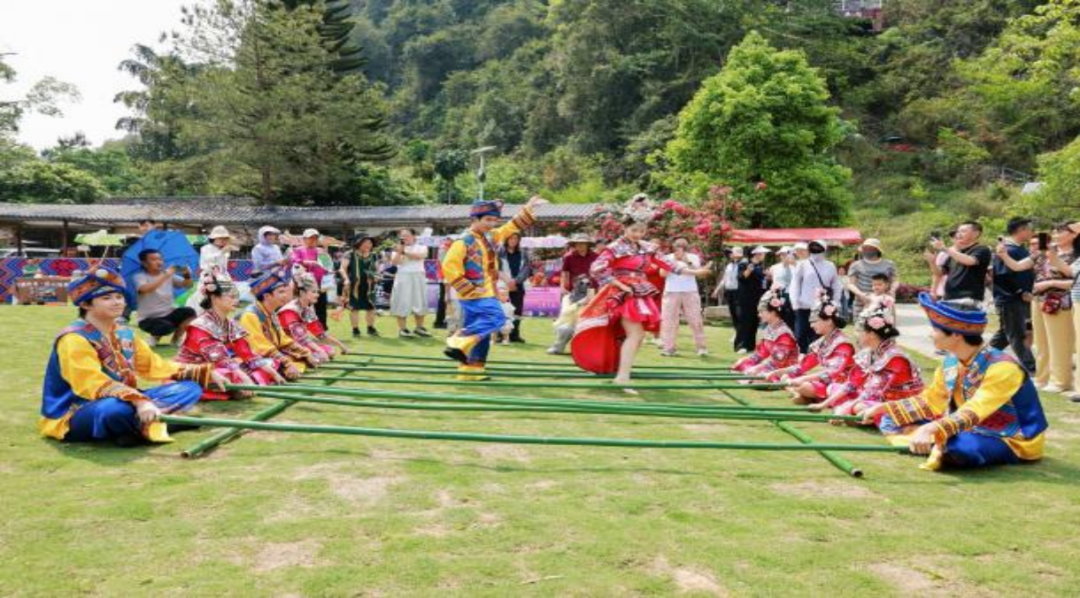 鵝泉邊,山水相映,山歌不斷?;顒右潦迹窀臀栌e環(huán)節(jié)以歡快的節(jié)奏拉開序幕,即刻讓現(xiàn)場嘉賓沉浸式感受八桂大地的熱情與活力。緊接著,一場別開生面的山歌對歌點燃全場——這邊高聲唱道“靖西鵝泉好風(fēng)光嘞,青山綠水繞身旁哎,哥妹相逢泉邊唱嘞,歡聲笑語滿山坡喲。”那邊隨即應(yīng)和:“青年結(jié)伴來相會嘞,真情不比彩禮錢哎,同心同路向前走嘞,幸福日子萬年長喲。”歌聲此起彼伏,將壯鄉(xiāng)“以歌會友、以歌傳情”的浪漫傳統(tǒng)演繹得淋漓盡致。