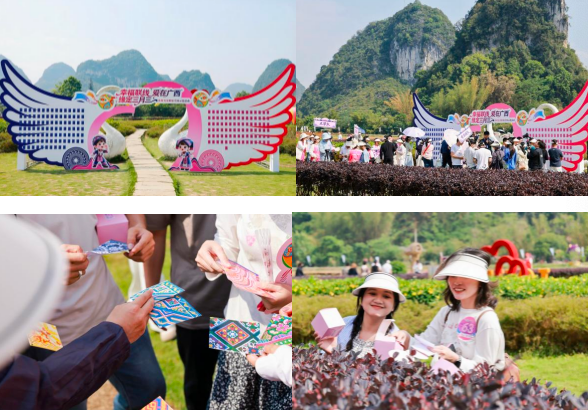 盛產(chǎn)于靖西的繡球,本是寓意美好的男女定情信物,又適逢廣西三月三,歡歌盛舞的民俗文化與現(xiàn)代交友聯(lián)誼深度融合,沉浸式、互動式的體驗感拉滿,打造出極具文化底蘊(yùn)與浪漫氛圍的交友盛宴。