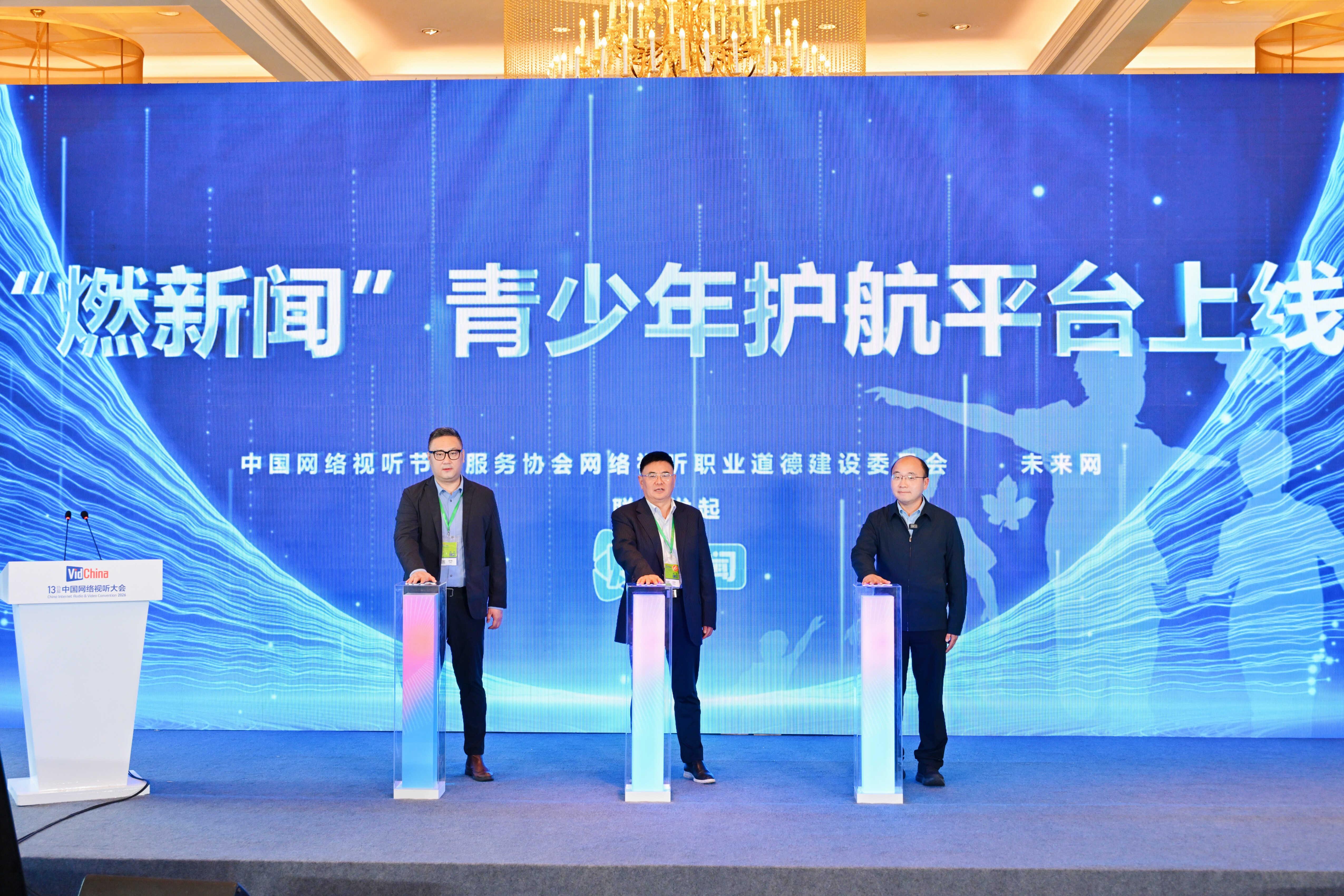圖為4月14日,在第十三屆中國網(wǎng)絡(luò)視聽大會“網(wǎng)絡(luò)視聽公益和社會責(zé)任論壇”上,“燃新聞”青少年護航平臺正式上線