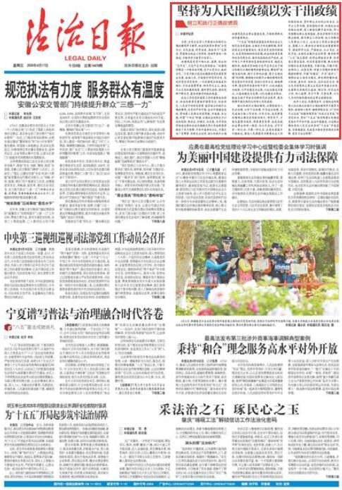 政法工作是黨和國家工作的重要組成部分,政法戰(zhàn)線肩負(fù)著維護(hù)國家安全、社會安定、人民安寧的神圣職責(zé),能否樹立和踐行正確政績觀,關(guān)系到平安中國、法治中國建設(shè)成效,影響著人民群眾的獲得感、幸福感、安全感?;赝笆奈濉睍r期,全國政法戰(zhàn)線全力以赴防風(fēng)險、保安全、護(hù)穩(wěn)定、促發(fā)展,為書寫經(jīng)濟(jì)快速發(fā)展和社會長期穩(wěn)定兩大奇跡新篇章提供了有力保障,平安中國舉世公認(rèn),中國之治廣受贊譽。實踐充分證明,樹立和踐行正確政績觀是政法事業(yè)蓬勃發(fā)展、不斷取得新成效的重要保證。