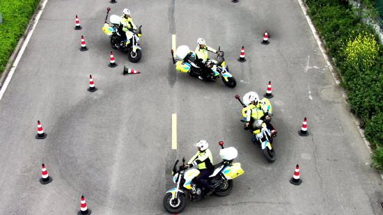4月14日,安徽省渦陽縣公安局組織交警鐵騎隊員開展春季大練兵。圖為鐵騎隊員進行繞樁練習。 本報通訊員 吳勝利 攝