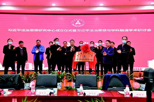 中南財(cái)經(jīng)政法大學(xué)習(xí)近平法治思想研究中心成立儀式。