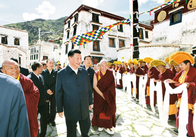 2021年7月21日至23日,中共中央總書(shū)記、國(guó)家主席、中央軍委主席習(xí)近平來(lái)到西藏,祝賀西藏和平解放70周年,看望慰問(wèn)西藏各族干部群眾。這是22日下午,習(xí)近平在位于拉薩西郊的哲蚌寺考察。 新華社記者 謝環(huán)馳/攝