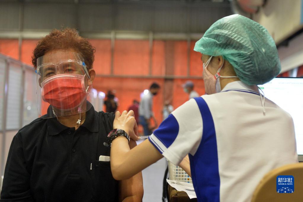 這是市民在泰國曼谷接種中國科興新冠疫苗(2021年5月12日攝)。新華社發(fā)(拉亨攝)
