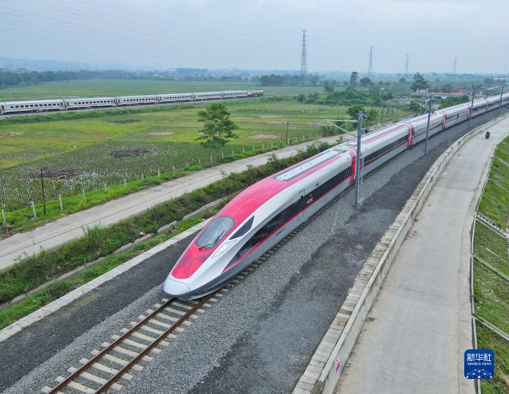 11月9日,印尼萬隆德卡魯爾車站。一輛帶有寶石紅涂色的高鐵列車緩緩啟動,標(biāo)志著雅萬高鐵試驗段接觸網(wǎng)熱滑試驗全面展開。雅萬高鐵項目自2016年正式啟動以來,在兩國元首關(guān)心下順利推進(jìn),已成為共建“一帶一路”的標(biāo)志性項目。項目建成后,雅加達(dá)到萬隆的旅行時間將由現(xiàn)在的3個多小時縮短至40分鐘。