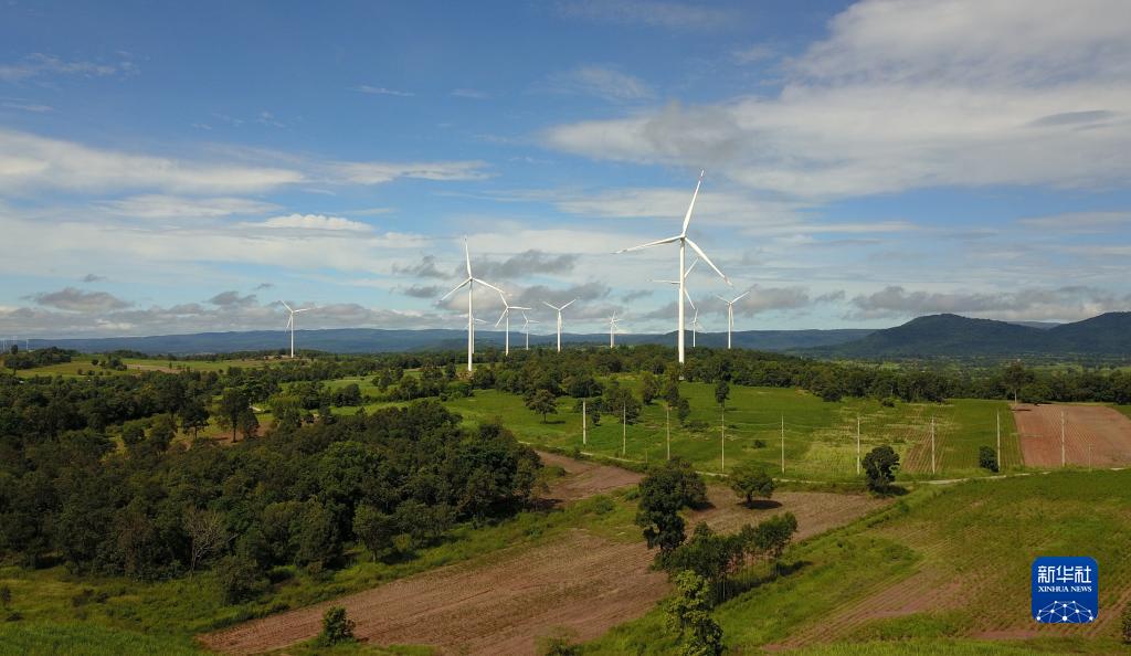 這是位于泰國猜也蓬府的由中國金風(fēng)科技提供的風(fēng)力發(fā)電機(jī)(2022年10月4日攝,無人機(jī)照片)。新華社發(fā)(塔納攝)