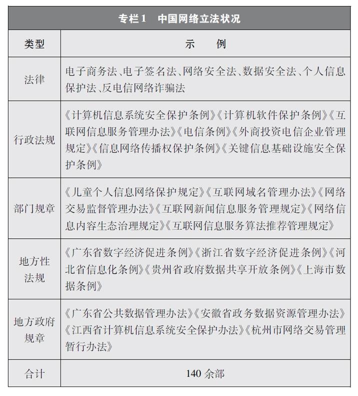 中國(guó)網(wǎng)絡(luò)立法隨著互聯(lián)網(wǎng)發(fā)展經(jīng)歷了從無(wú)到有、從少到多、由點(diǎn)到面、由面到體的發(fā)展過(guò)程。第一階段從1994年至1999年,是接入互聯(lián)網(wǎng)階段。上網(wǎng)用戶和設(shè)備數(shù)量穩(wěn)步增加。這一階段網(wǎng)絡(luò)立法主要聚焦于網(wǎng)絡(luò)基礎(chǔ)設(shè)施安全,即計(jì)算機(jī)系統(tǒng)安全和聯(lián)網(wǎng)安全。第二階段從2000年至2011年,是PC互聯(lián)網(wǎng)階段。隨著計(jì)算機(jī)數(shù)量逐步增加、上網(wǎng)資費(fèi)逐步降低,用戶上網(wǎng)日益普遍,網(wǎng)絡(luò)信息服務(wù)迅猛發(fā)展。這一階段網(wǎng)絡(luò)立法轉(zhuǎn)向側(cè)重網(wǎng)絡(luò)服務(wù)管理和內(nèi)容管理。第三階段從2012年至今,是移動(dòng)互聯(lián)網(wǎng)階段。這一階段網(wǎng)絡(luò)立法逐步趨向全面涵蓋網(wǎng)絡(luò)信息服務(wù)、信息化發(fā)展、網(wǎng)絡(luò)安全保護(hù)等在內(nèi)的網(wǎng)絡(luò)綜合治理。在這一進(jìn)程中,中國(guó)制定出臺(tái)網(wǎng)絡(luò)領(lǐng)域立法140余部,基本形成了以憲法為根本,以法律、行政法規(guī)、部門規(guī)章和地方性法規(guī)、地方政府規(guī)章為依托,以傳統(tǒng)立法為基礎(chǔ),以網(wǎng)絡(luò)內(nèi)容建設(shè)與管理、網(wǎng)絡(luò)安全和信息化等網(wǎng)絡(luò)專門立法為主干的網(wǎng)絡(luò)法律體系,為網(wǎng)絡(luò)強(qiáng)國(guó)建設(shè)提供了堅(jiān)實(shí)的制度保障。