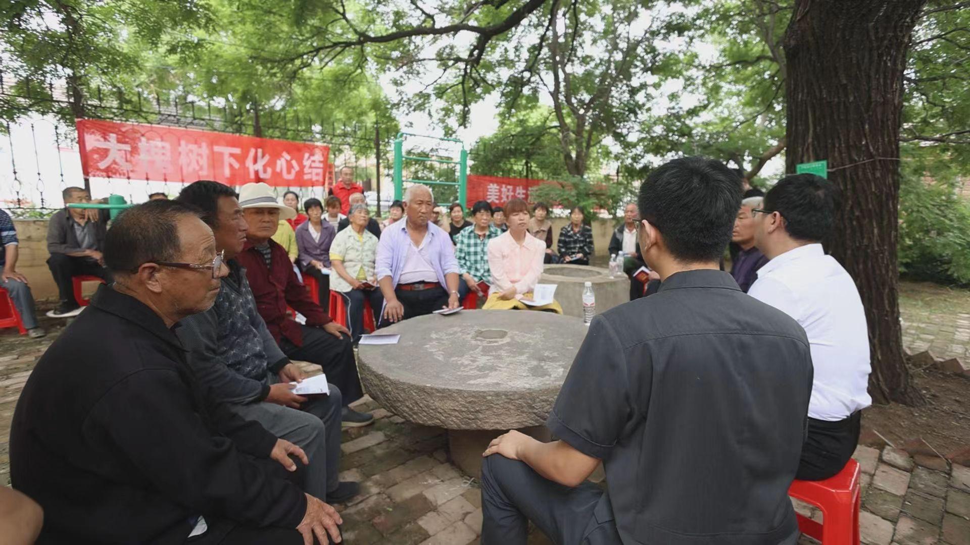 圖為平原縣張華鎮(zhèn)郝堂村口開展“大槐樹下講講理”活動(dòng)。