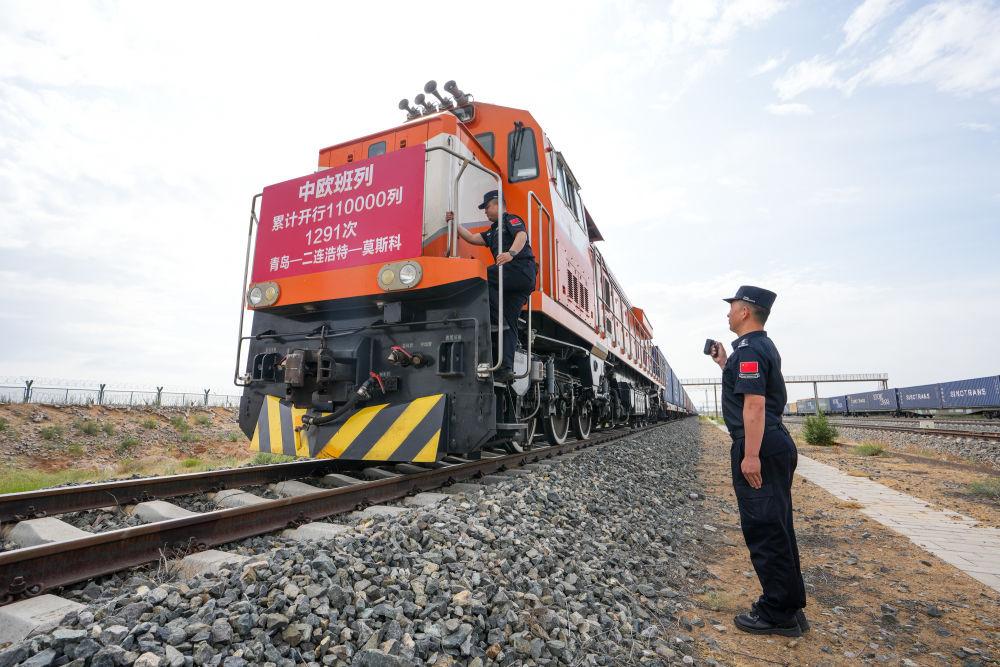 6月10日,我國(guó)第11萬列中歐班列從中國(guó)-上海合作組織地方經(jīng)貿(mào)合作示范區(qū)多式聯(lián)運(yùn)中心發(fā)出,滿載1萬余臺(tái)山東本地制造的智能家電,貨值超2000萬元人民幣,經(jīng)內(nèi)蒙古二連浩特口岸出境,駛向俄羅斯首都莫斯科。