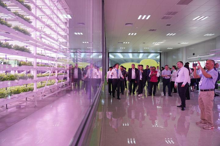 5月19日,上海合作組織減貧和可持續(xù)發(fā)展論壇與會人員在陜西楊凌智慧農(nóng)業(yè)示范園進行實地考察。新華社記者 邵瑞 攝