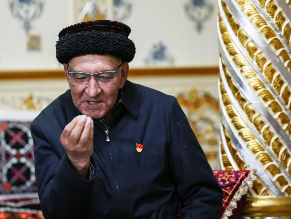 2023年9月4日,“時(shí)代楷?!崩R尼·巴依卡的父親巴依卡老人在新疆塔什庫爾干塔吉克自治縣的家中接受采訪。生活于帕米爾高原上的塔吉克族兒女,素來心中懷有“家是塔縣,國(guó)是中國(guó),放牧守邊是職責(zé)”的愛國(guó)守邊精神。巴依卡老人一家三代70年接續(xù)守邊護(hù)邊,愛國(guó)奉獻(xiàn)的壯舉感動(dòng)了無數(shù)國(guó)人?!斑吘尘€是中國(guó)的邊境線,紅其拉甫是中國(guó)56個(gè)民族的紅其拉甫,我們的56個(gè)民族就要像石榴籽一樣緊緊抱在一起?!卑鸵揽ɡ先苏f。