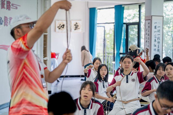 2025年5月12日,云南省昭通市威信縣第一中學學生在大屏上紅色研學實踐基地體驗編織草鞋。200余名學生在紅色研學實踐基地親手編織草鞋、制作蠟染,并參觀了扎西會議舊址、紅軍長征過云南情景體驗館,在實踐互動中重溫紅色革命歷史。威信縣立足紅色文化資源優(yōu)勢,先后建成扎西會議紀念館、紅軍長征標語館等紅色文化展館,以舊址遺跡為“教室”,以文物史料為“教材”,設計開發(fā)多門精品研學課程和線路,在深入開展紅色研學系列活動中傳承紅色基因。