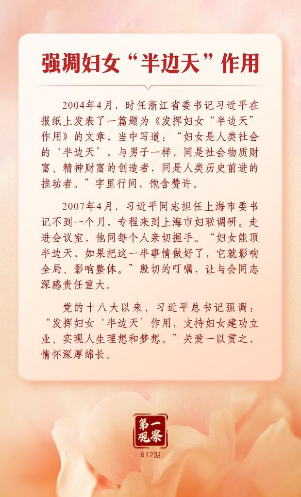 習(xí)近平總書(shū)記始終心系婦女事業(yè)發(fā)展。在全球婦女峰會(huì)即將召開(kāi)之際,讓我們一道深刻體悟這份一以貫之的牽掛與重視。