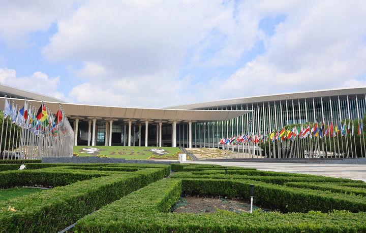 2025年10月5日拍攝的進博會舉辦場所——國家會展中心(上海)外景。新華社記者 方喆 攝
