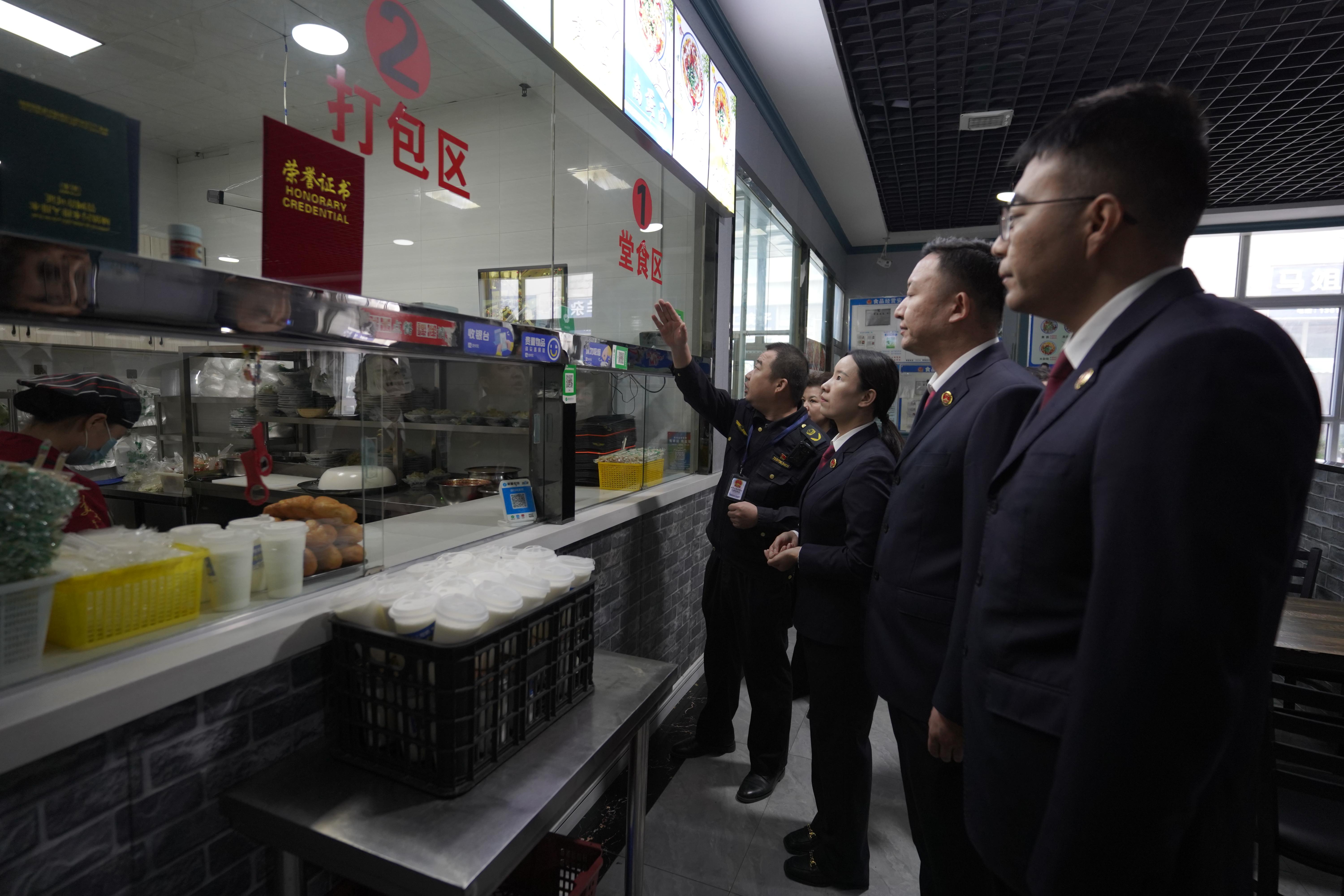 圖為10月13日,檢察官與市場監(jiān)管局工作人員走訪升級改造后的涼皮店。張振宏 攝