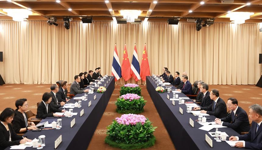 習(xí)近平強調(diào),不久前,中共二十屆四中全會成功召開,審議通過了“十五五”規(guī)劃建議。中方愿同泰方加強發(fā)展戰(zhàn)略對接,分享新時代中國的發(fā)展經(jīng)驗。雙方要加快中泰鐵路建設(shè),加強農(nóng)產(chǎn)品貿(mào)易、綠色經(jīng)濟、數(shù)字創(chuàng)新等合作,讓兩國人民有更多獲得感。深化旅游、青年、地方等人文交流,辦好建交50周年慶?;顒樱龠M民心相通。要加大打擊網(wǎng)賭電詐等跨境犯罪力度,為兩國交往和合作營造安全環(huán)境。面對變亂交織的國際形勢,中方愿同泰方一道推動落實全球治理倡議,維護國際公平正義,維護全球南方共同利益。