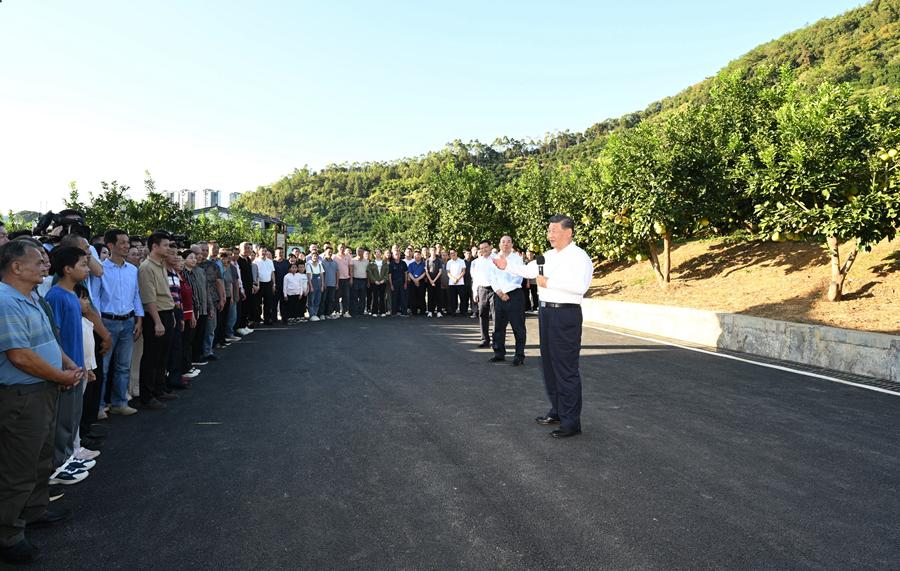 11月7日至8日,中共中央總書記、國家主席、中央軍委主席習(xí)近平在廣東考察。這是7日下午,習(xí)近平在梅州市梅縣區(qū)雁洋鎮(zhèn)南福金柚種植基地考察。新華社發(fā)(肖翊 攝)