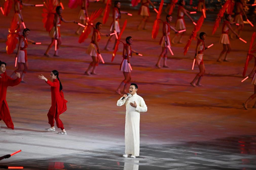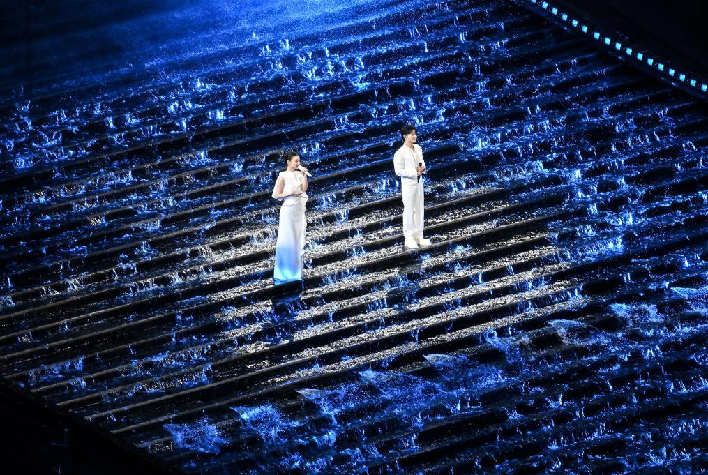11月9日,歌手周深(右)和單依純在開幕式現(xiàn)場演唱。新華社記者 李鑫 攝