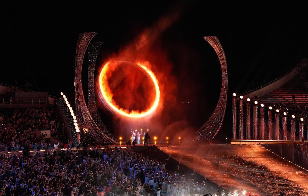 9日的羊城廣州,廣東奧體中心燈光璀璨,宛如飛揚的緞帶。場內,“同心圓”水舞臺波光粼粼,倒映萬家燈火?;浉郯拇鬄硡^(qū)面水而生、因水而興——這是一場以“水”為脈絡的全運會開幕式。