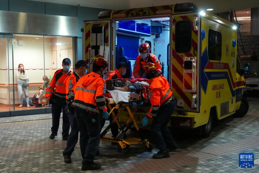 11月26日,一名火災(zāi)傷員被送至香港威爾斯親王醫(yī)院。新華社記者 朱煒 攝