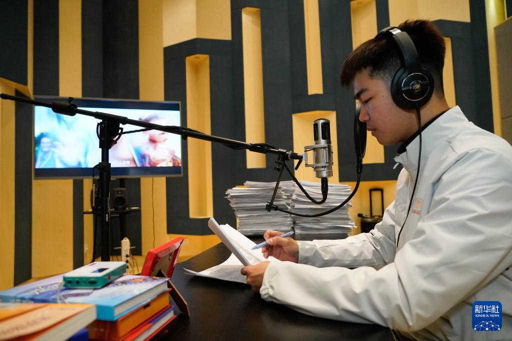 “光明影院”志愿者在進(jìn)行無障礙電影講述配音(12月1日攝)。新華社記者 謝晗 攝