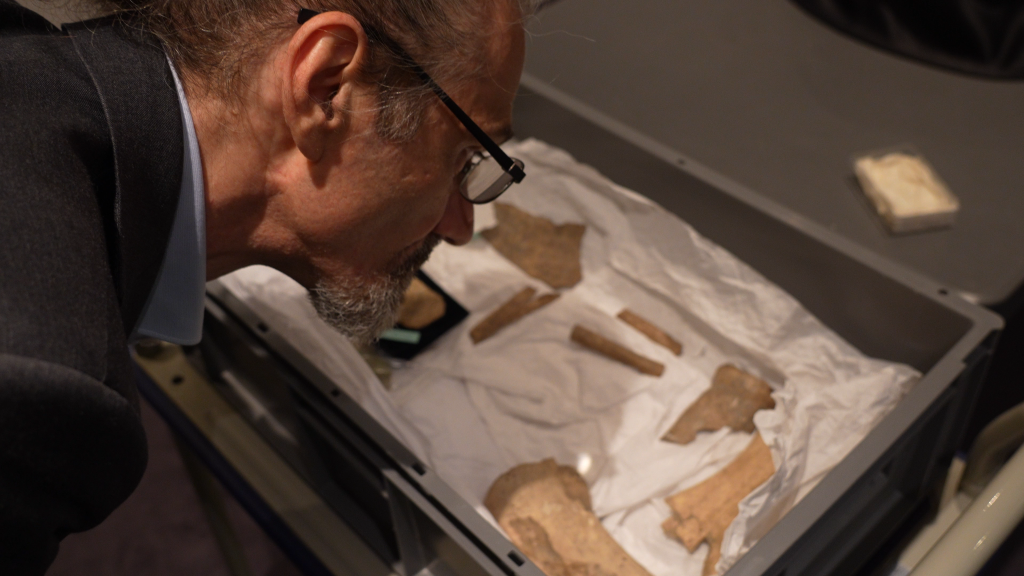 法國賽努奇博物館珍藏著15片甲骨。中國研究團隊帶來高清攝影設備,從48個角度打光,為每一枚甲骨片留下96張照片?!拔覀兒芨吲d參與這一項目。這對中國文明史很重要,對世界文明史同樣重要?!辟惻娌┪镳^館長埃里克·勒菲弗說。