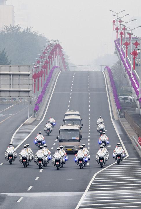 ??2020年9月8日上午,全國抗擊新冠肺炎疫情表彰大會在北京人民大會堂隆重舉行。這是國家勛章和國家榮譽稱號獲得者集體乘坐禮賓車從住地出發(fā),由國賓護衛(wèi)隊護衛(wèi)前往人民大會堂。新華社記者 劉彬 攝